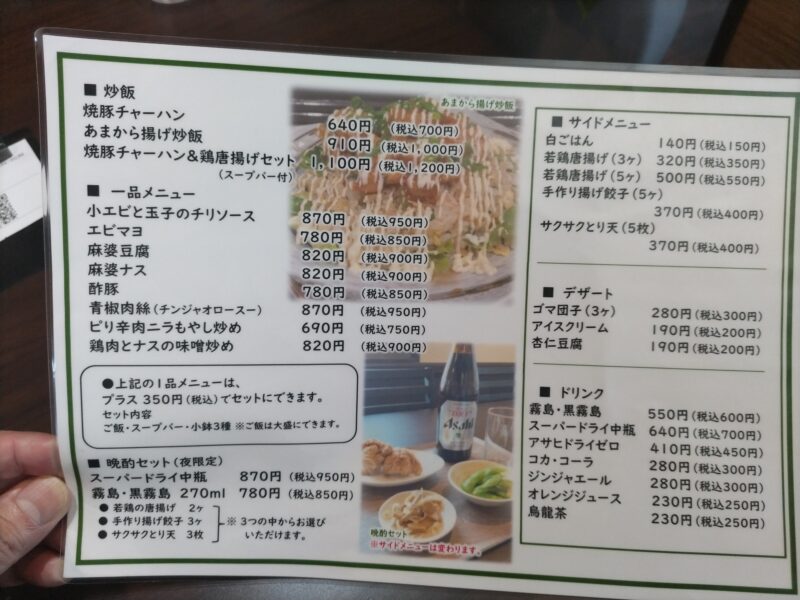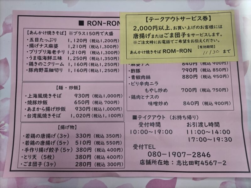 レジ前にテイクアウト用のメニュー表が